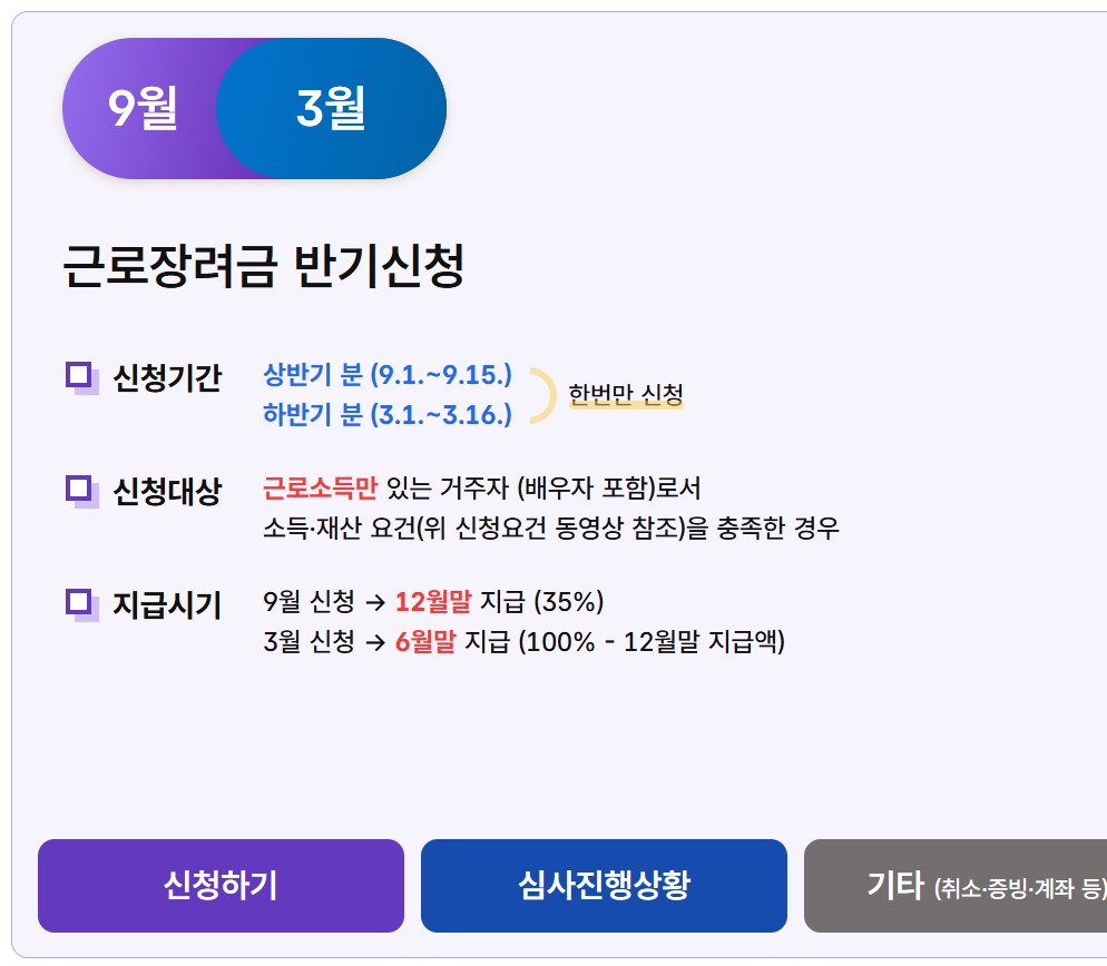 근로장려금은 저소득 근로자의 생활 안정을 지원하기 위해 정부가 마련한 제도 중 하나로, 매년 많은 국민이 신청하는 대표적인 복지 지원금입니다. 특히 반기신청 제도는 근로소득이 발생한 시점에 맞춰 상반기와 하반기로 나누어 신청할 수 있도록 한 제도로, 기존의 정기신청보다 빠른 지원이 가능하다는 장점이 있습니다.