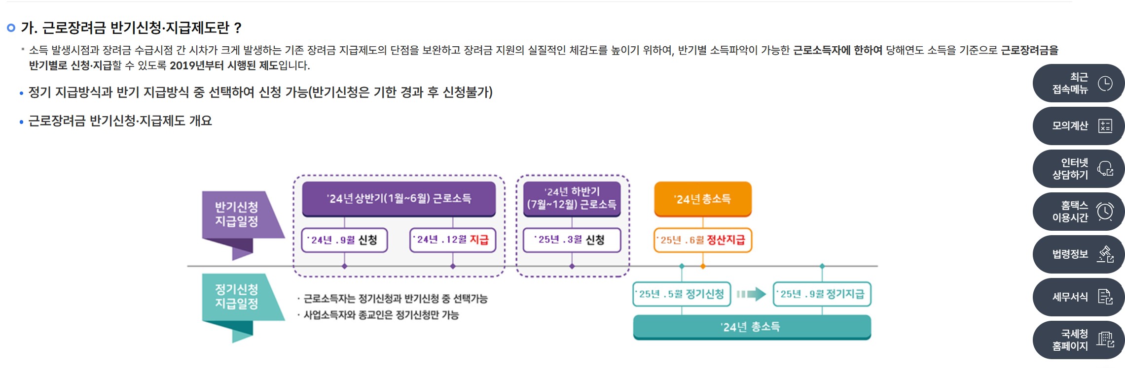 이러한 문제를 보완하기 위해 도입된 것이 바로 반기신청 제도입니다. 반기신청은 소득이 발생한 시점에 따라 상반기와 하반기로 나누어 신청할 수 있으며, 그만큼 지급 시기가 앞당겨집니다. 예를 들어 상반기 소득분은 9월에 신청하면 같은 해 12월에 받을 수 있고, 하반기 소득분은 다음 해 3월 신청 후 6월에 지급받을 수 있습니다.