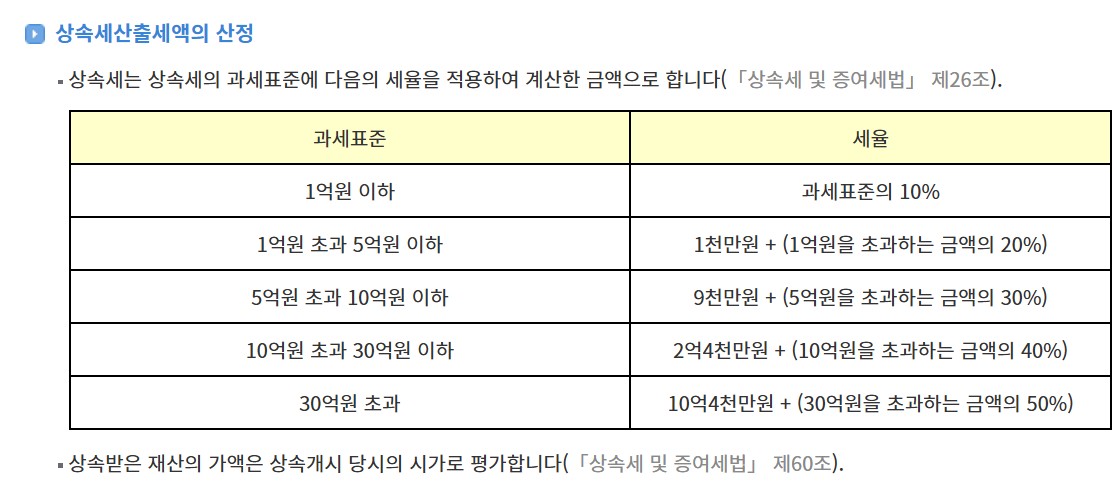 2025년 상속세 세율과 공제 항목