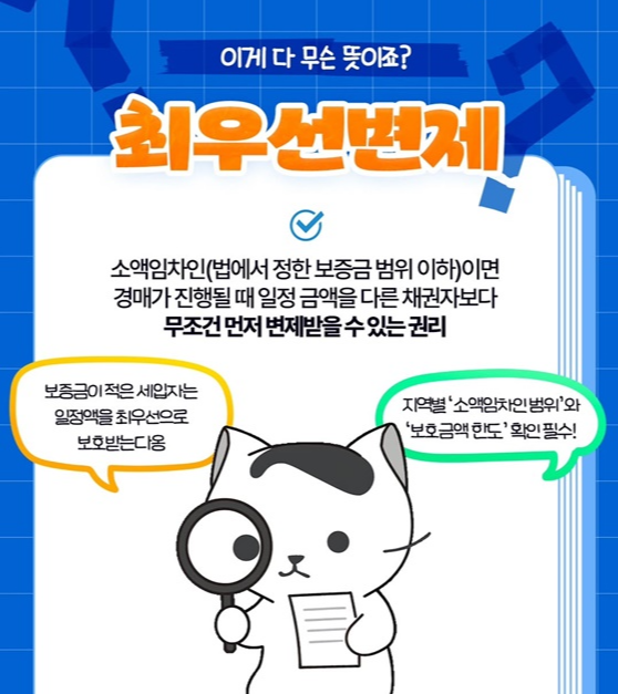 이는 경제적 약자를 보호하기 위한 제도로, 세입자가 반드시 확인해야 할 부분입니다. 다만 최우선변제를 받기 위해서는 대항력 요건을 갖추어야 하며, 지역별로 소액임차인의 기준과 보호 금액 한도가 다르게 적용됩니다. 따라서 계약 전 자신이 소액임차인 범위에 해당하는지 반드시 확인하는 것이 필요합니다.