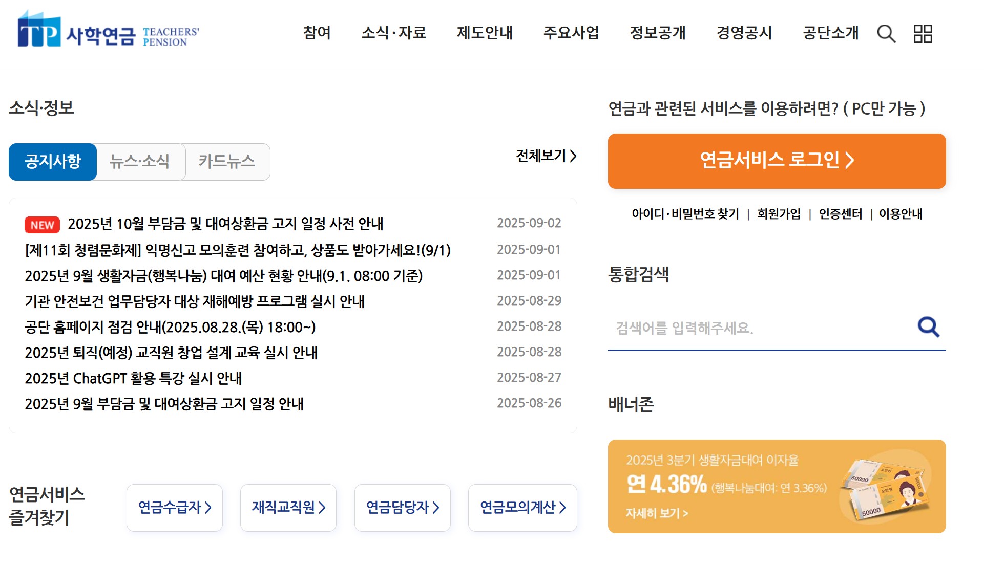 사립학교교직원연금공단 공식 홈페이지는 교직원의 연금 생활 전반을 지원하는 중심 창구로 운영되고 있습니다. 이곳에서는 공지사항을 통해 제도 개편, 시스템 점검, 각종 변경 사항을 빠르게 확인할 수 있으며, 교직원이 가장 많이 찾는 기능 중 하나는 연금 모의계산 서비스입니다.
