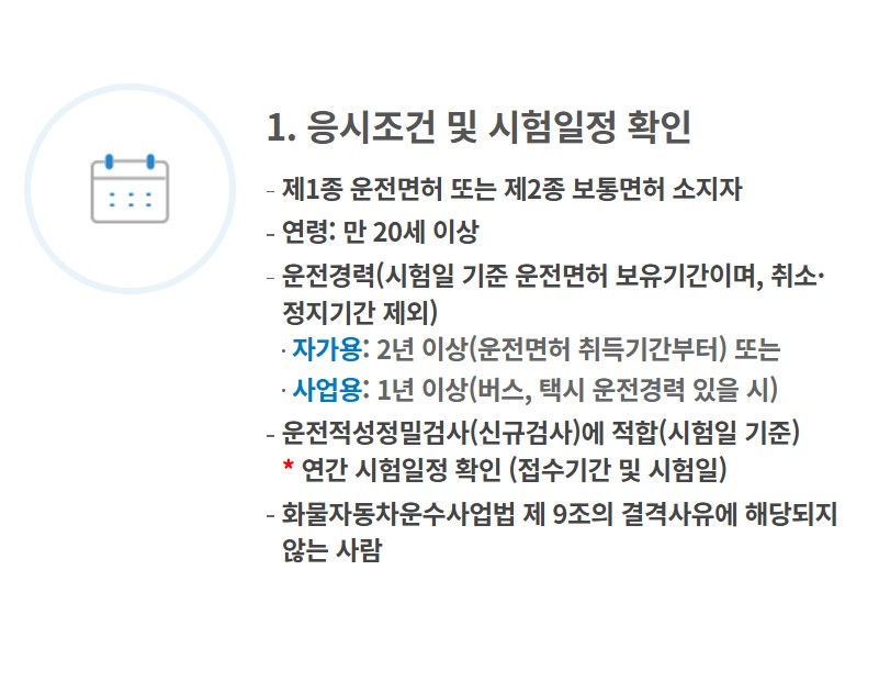 일반적으로 만 20세 이상이어야 자격 시험에 응시할 수 있습니다. 또한 법규 위반 경력이 일정 기간 내에 존재할 경우 응시가 제한될 수 있습니다. 예를 들어 음주운전이나 뺑소니와 같은 중대한 위법으로 면허가 취소된 경우에는 결격 사유에 해당하여 자격 취득이 불가능합니다.