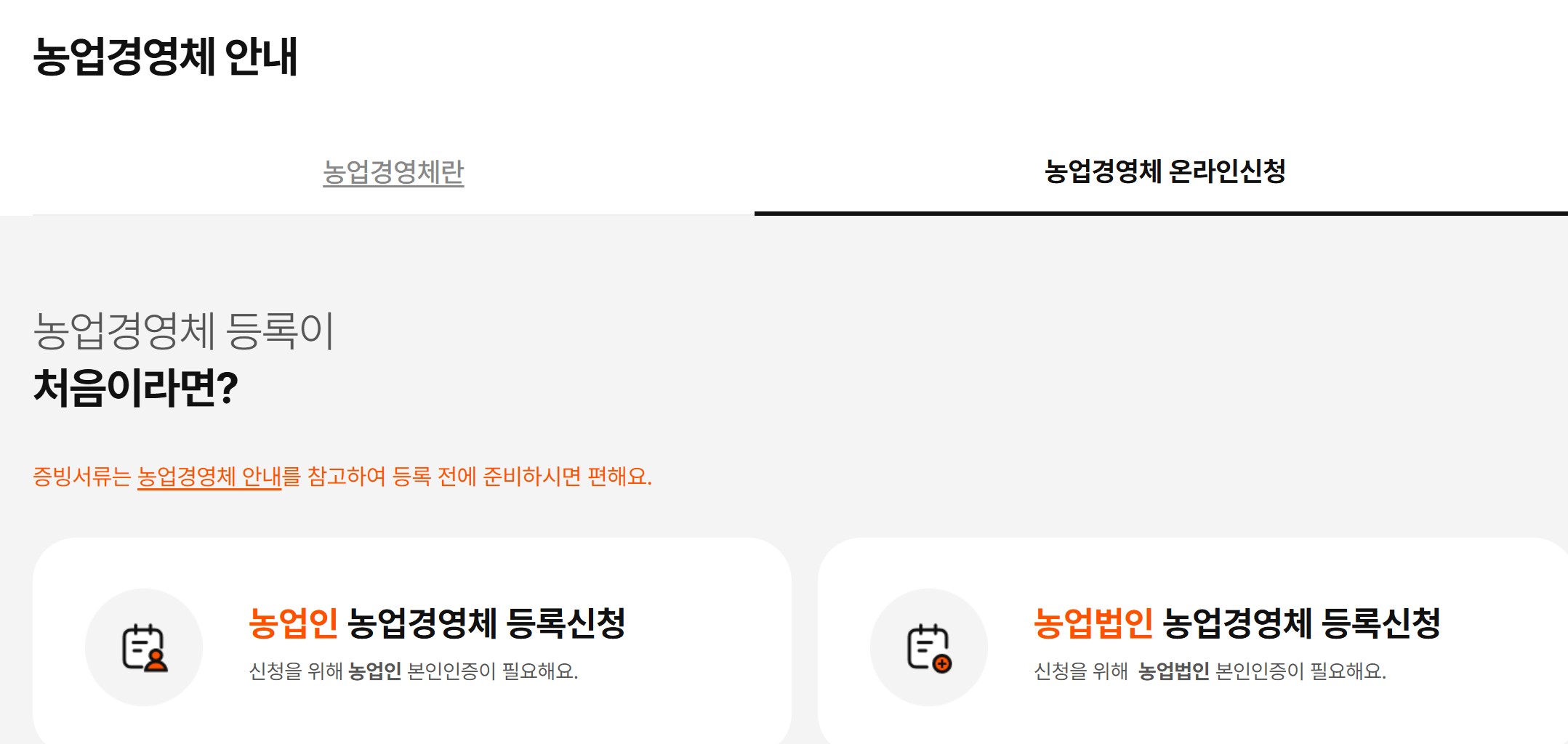농업경영체 등록은 개인 농업인과 법인 농업인 모두 신청할 수 있습니다.