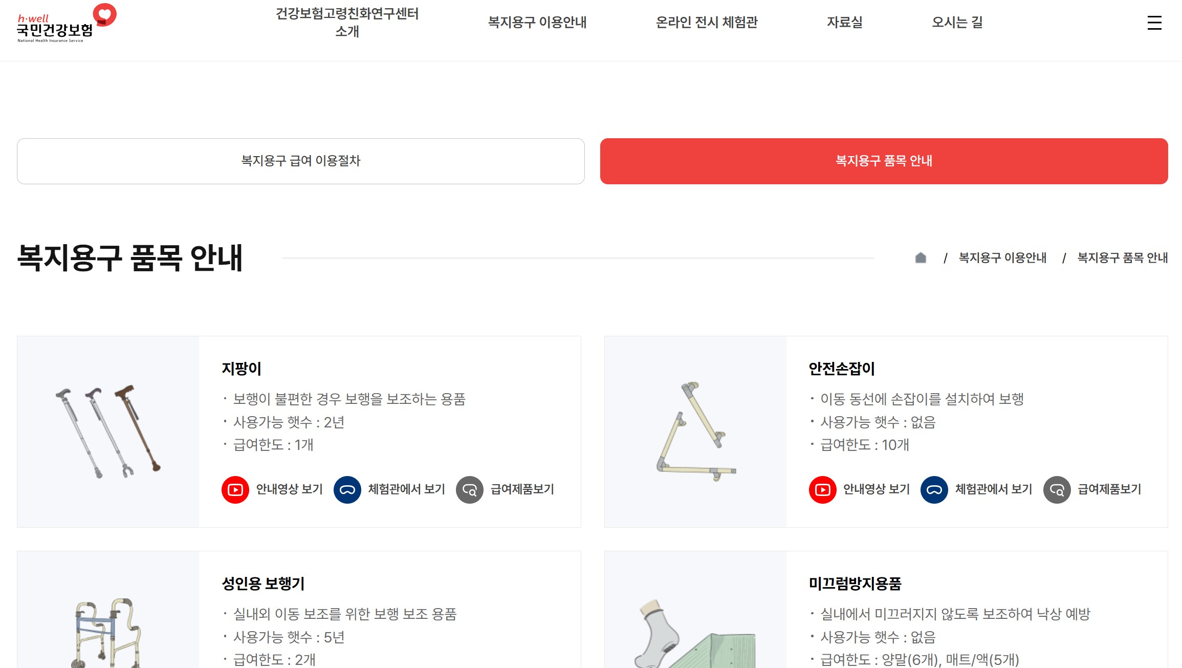 복지용구 구입 및 대여 품목 상세