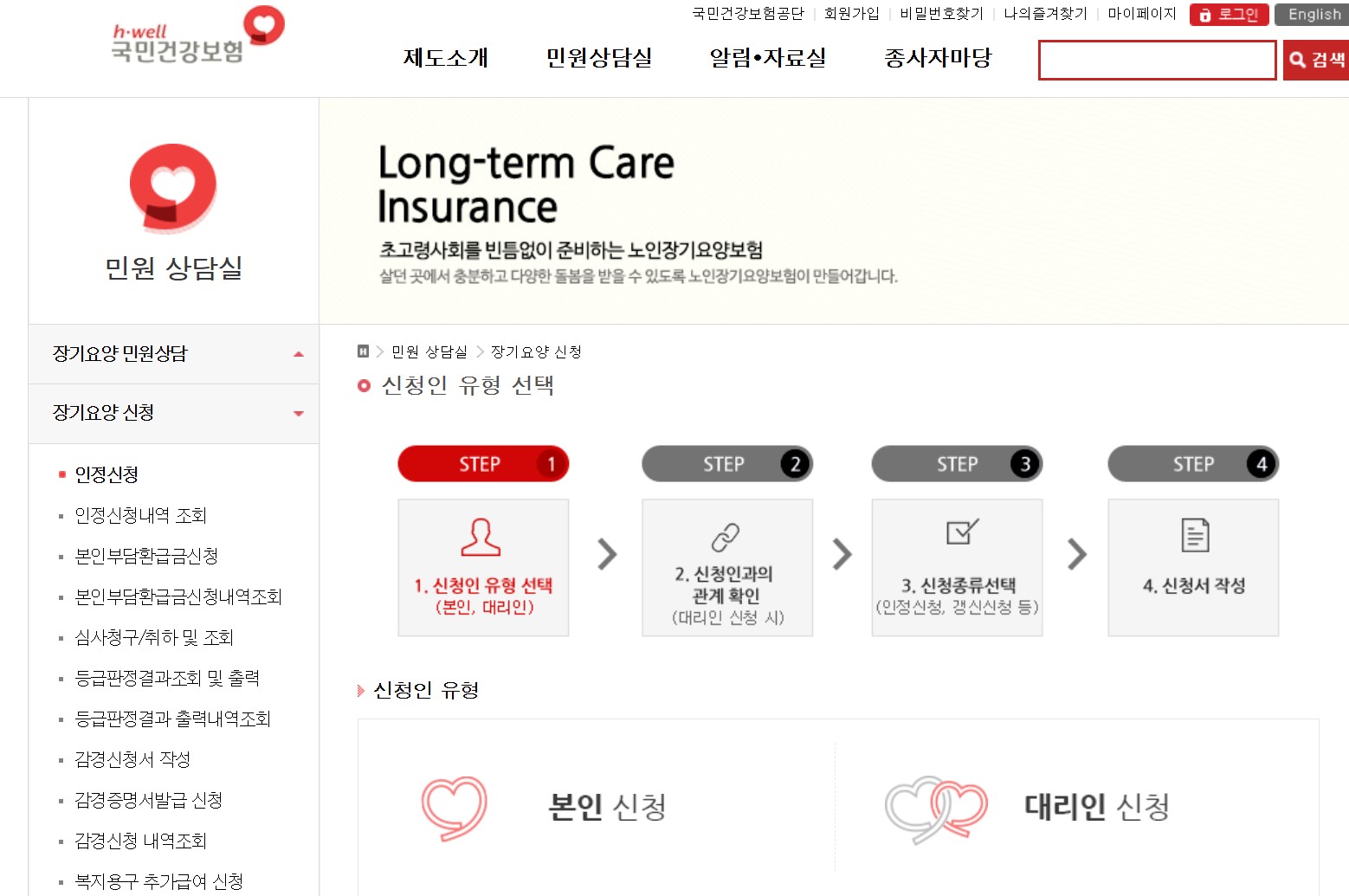 등급이 없다면 국민건강보장공단에 장기요양인정 신청을 먼저 진행해야 합니다.
