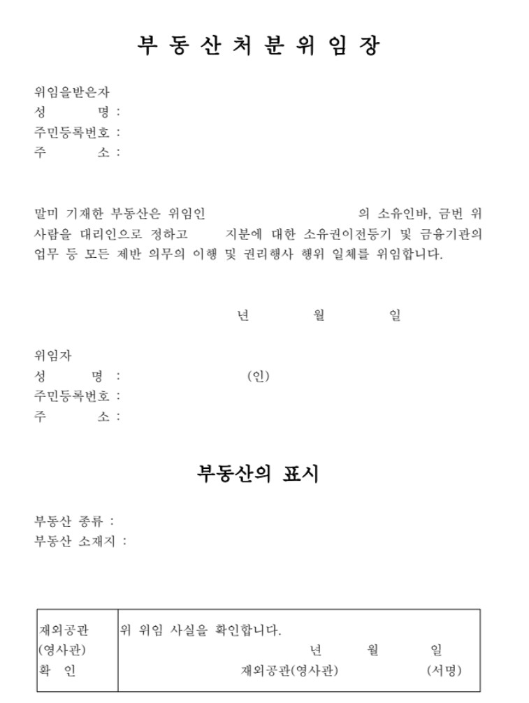 부동산 거래는 본인이 직접 진행하는 것이 가장 안전하지만, 부득이하게 대리인을 통해 진행하는 경우가 있습니다. 이때는 위임 관계를 명확히 하기 위한 추가 서류가 필요합니다.